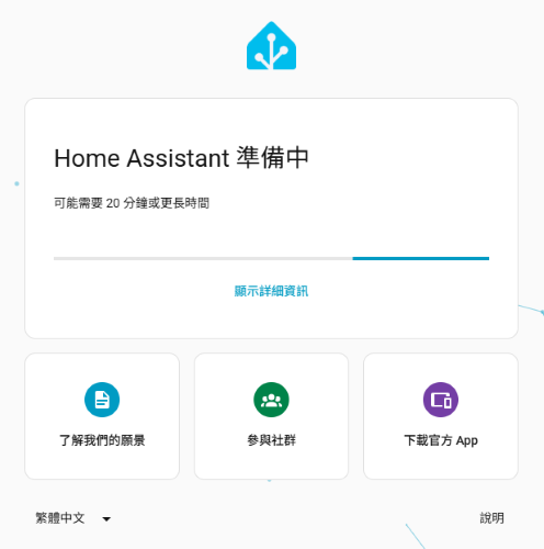 等待一段時間便可用瀏覽器打開 http://homeassistant.local:8123/