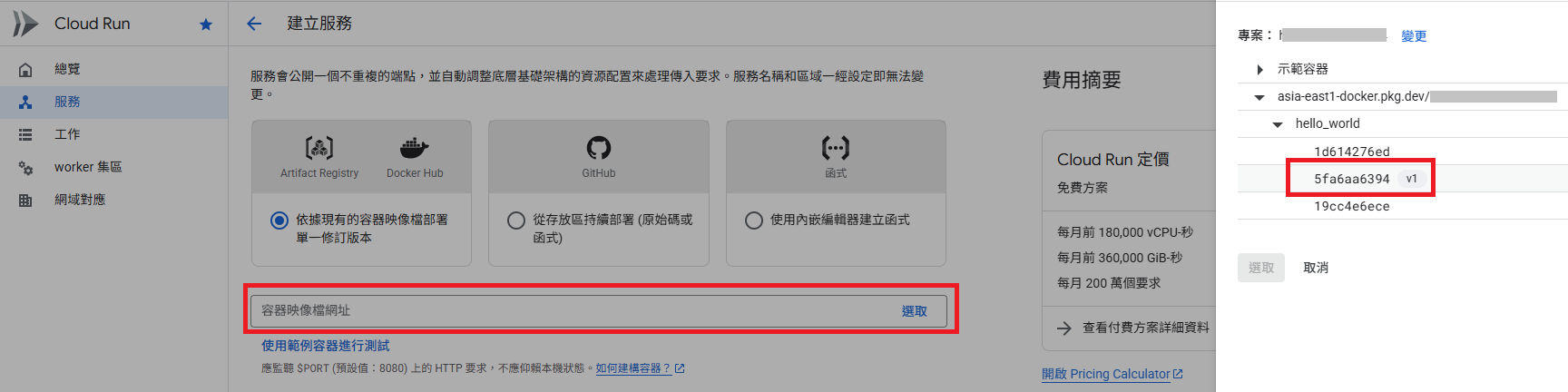 選擇剛才上傳至 Artifact Registry 的 image,注意底下的 port 預設是 8080,要改成 8000 (或指定 port)。