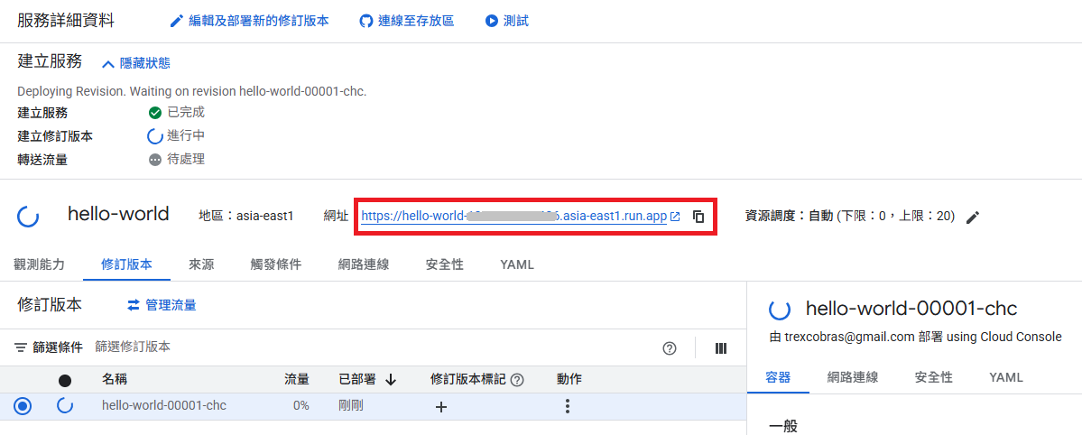 待部署完成後,就可以打開 GCP 提供的網址做確認。