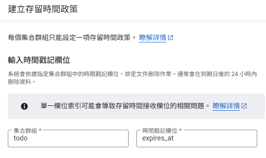 參考https://firebase.google.com/docs/firestore/ttl?hl=zh-tw